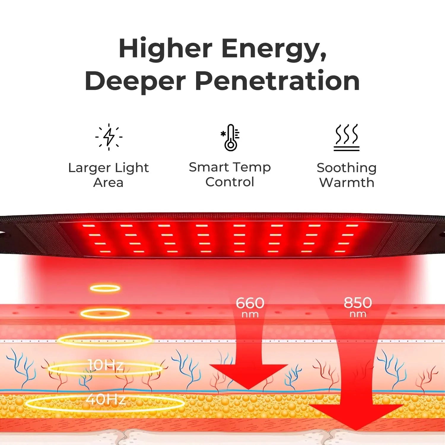 The 660 nm wavelength helps support collagen production at the skin’s surface, while 850 nm light reaches deeper layers to support cellular renewal and promote healthy circulation — helping the skin feel refreshed and look naturally radiant over time.