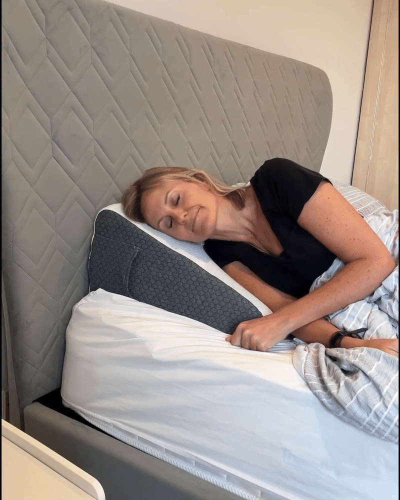This ergonomic wedge pillow is designed to raise your upper body slightly while you sleep on your side. Many people with sleep apnea or nighttime breathing issues find that side sleeping with gentle elevation helps them breathe more comfortably and reduces snoring. The supportive incline also promotes better posture and spinal alignment, so you can drift into a deeper, more restful sleep—without anything invasive.